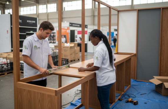 Stand com presença forte em foto e ao vivo.